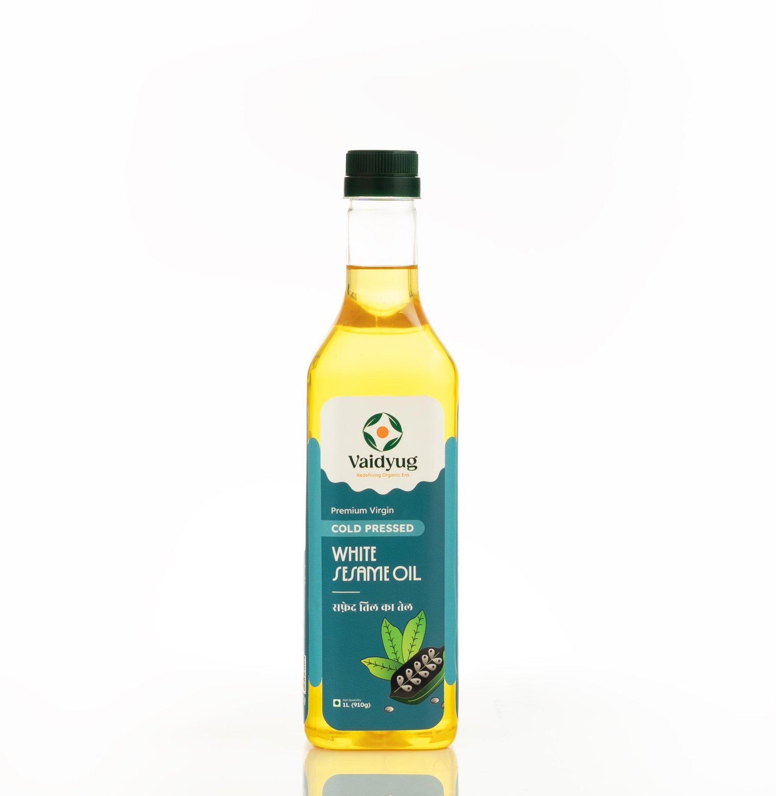 Vaidyug White Sesame Oil is a pure, organic, and wood-pressed oil extracted from carefully selected white sesame seeds.